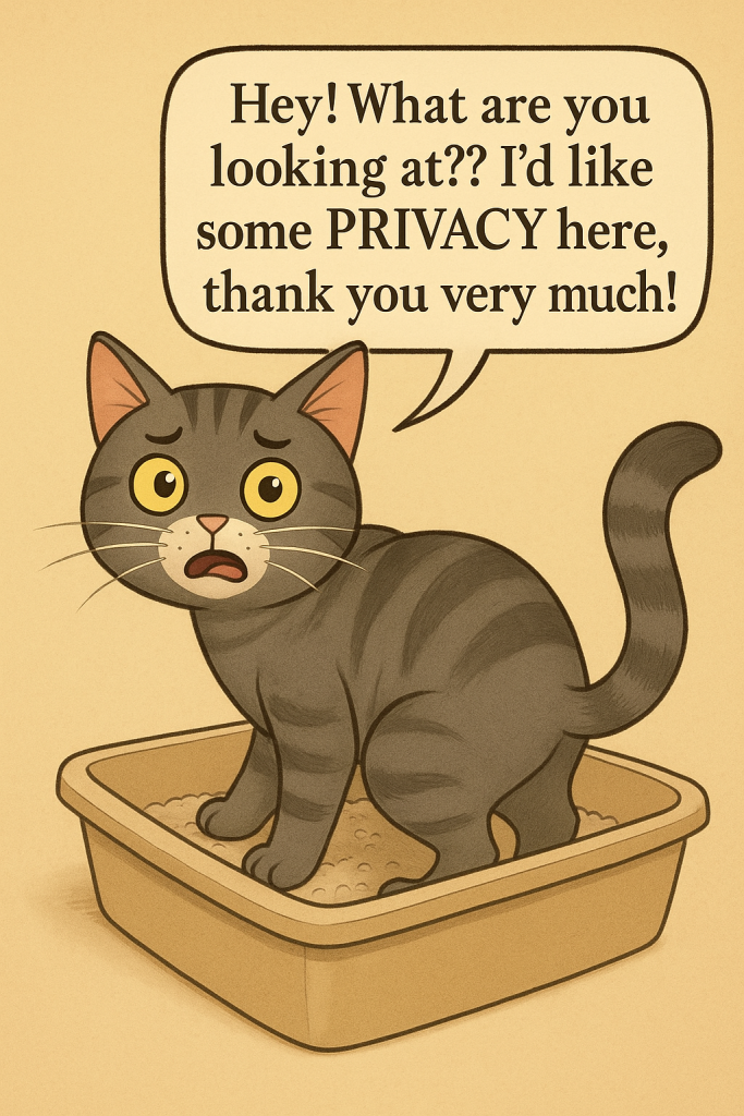 In plain cat-speak: we’ll keep our litter box tidy, but we can’t scoop theirs.